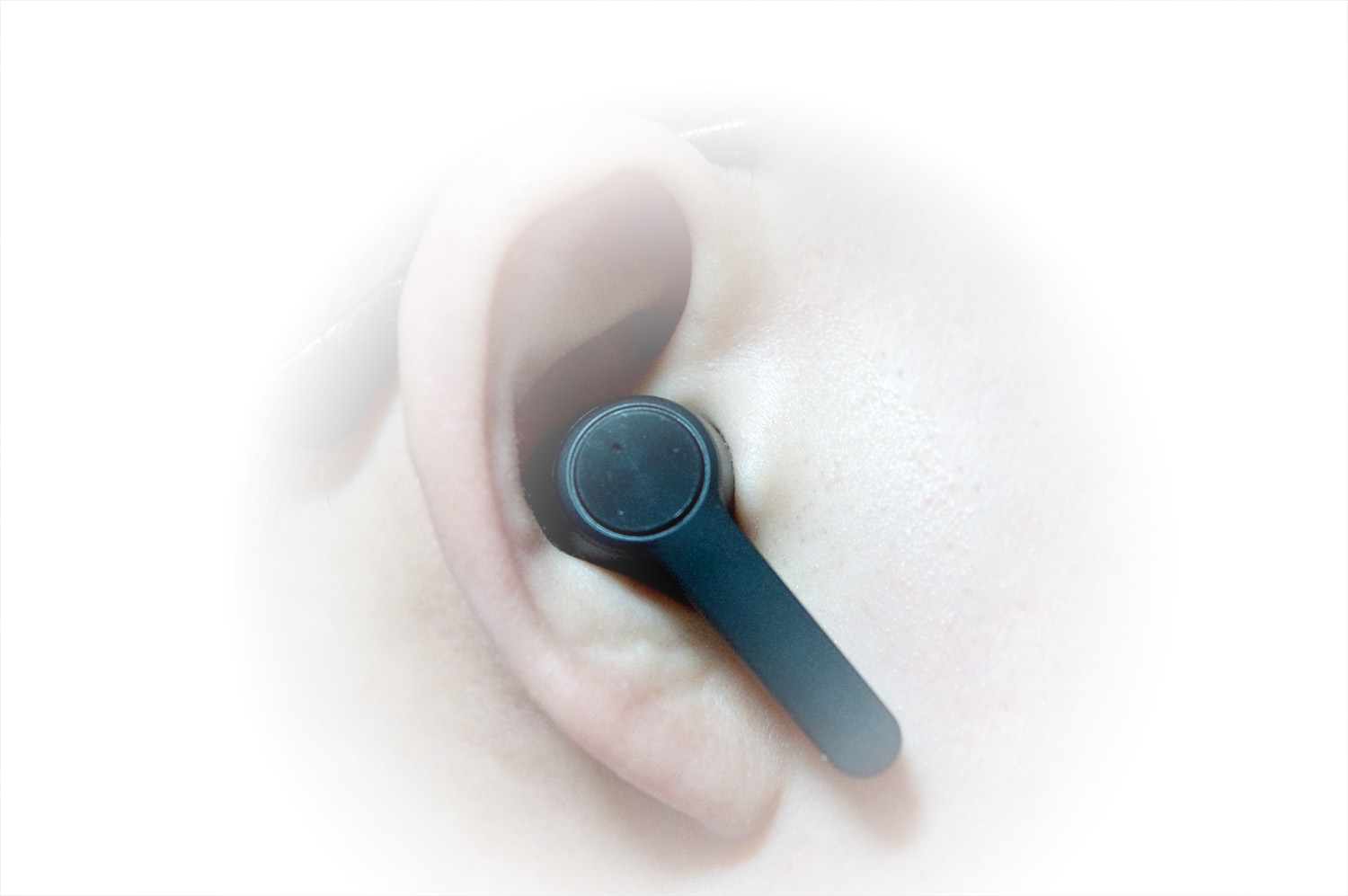 착용샷 - 측면 착용감은 준수한 편이었다. 보통 콩나물 형태의 이어버드가 볼에 고정이 안되고 공중에 떠있는 것 같이 불안정하다는 이미지가 있는데 에이프릴스톤 A20은 볼에 착 달라붙어 고정되어 있는 모습이었다. 의외로 머리를 세게 흔들어도 떨어지지 않을 정도의 착용감을 보여주어서 운동용으로 사용하는 데에도 무리가 없을 것으로 보인다. 디자인도 심플하기 때문에 심미적인 욕구도 충분히 만족시켜준다.